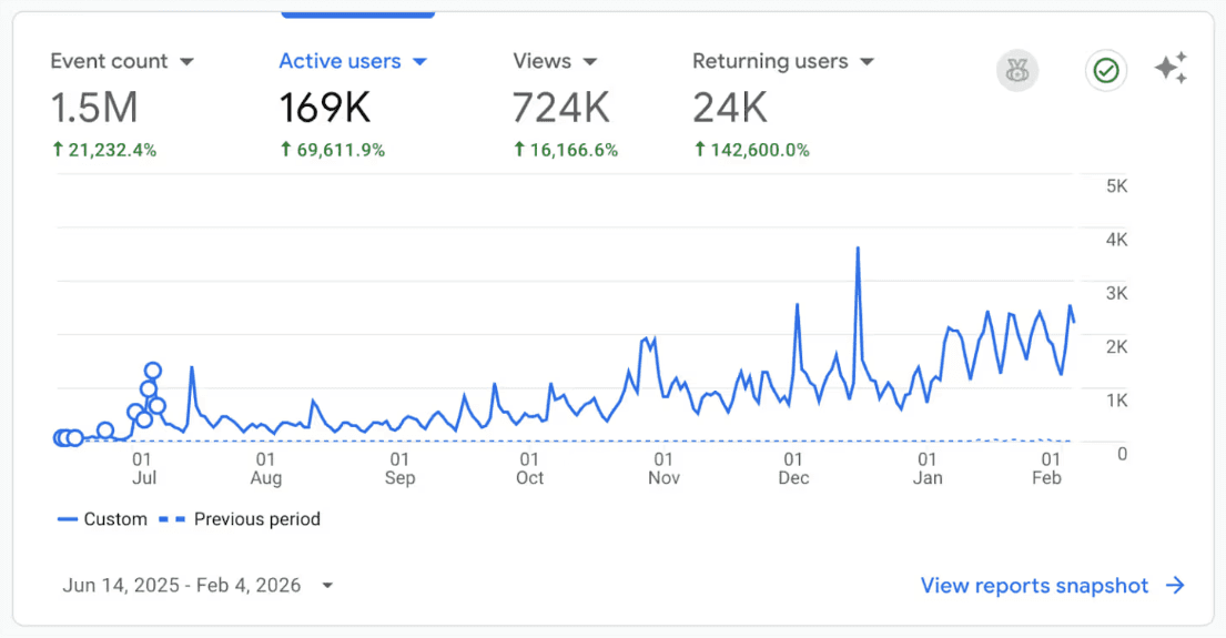 I grew the site (in the graph above) to 70,000 monthly users in 7 months with $0 ad spend (and sold it in Jan 2026).
